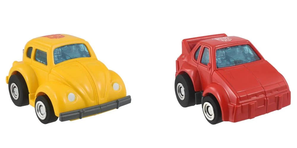 Each figure can transform from robot mode to vehicle mode. Bumblebee comes with a blaster, while Cliffjumper comes with a blaster and a cannon.